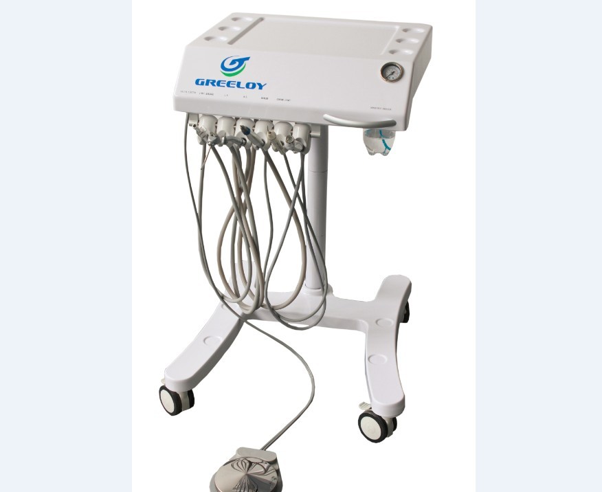 此款轻便式牙科治疗机是一款可灵活移动、造型新颖、便于操作的移动牙科治疗机。产品用材精良,,彰显高端治疗品质。同时重量很轻,可以方便地移动到任何需要使用的地方,如不同椅位间的治疗。它既可以快速连接外接气源,也可以选配一体的轻便静音气源,非常便捷。